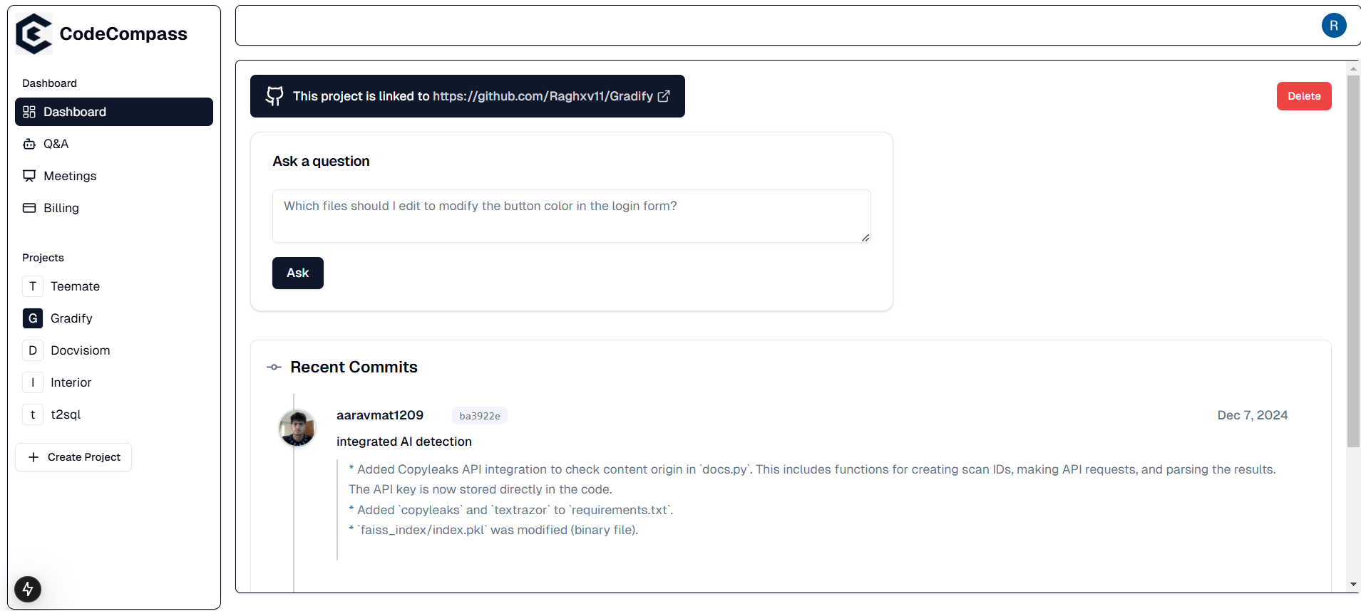 Instantly answer questions about your codebase and receive automated commit summaries using AI.